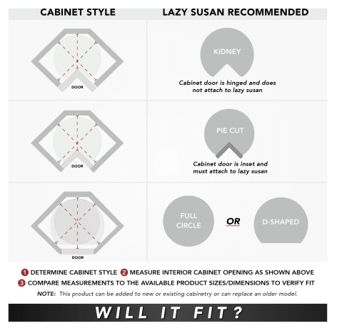 If your kidney base cabinet keeps secrets hiding everything within, make it come clean with Rev-A-Shelf's banded wood kidney shape lazy susan. The single and double 24", 28", and 32" diameters options are available in steel bearing mount. The 5/8" thick shelves rotate independently of each other for effortless access. Open your cabinet door, and with just a spin, you have complete access to everything stored within.